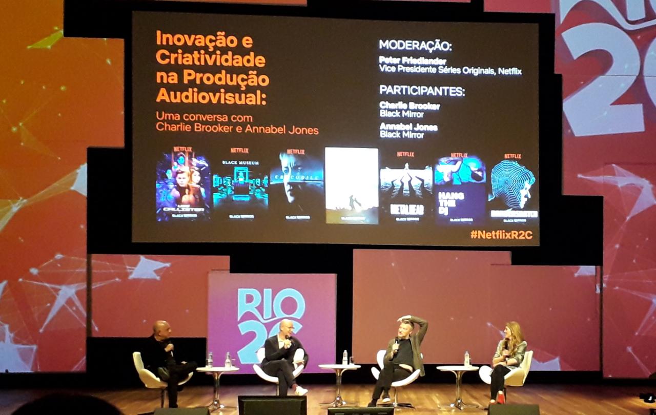 Em palestra sobre inovação e criatividade, o RIO2C trouxe como convidados Charlie Brooker e Annabel Jones – os produtores executivos de uma das séries mais comentadas e impactantes dos últimos tempos: Black Mirror. Conhecida por trabalhar seu enredo em cima de uma sociedade modificada e dominada por inovações e avanços tecnológicos, a criação da série e seu desenvolvimento passaram por processos criativos considerados intensos, atraindo a atenção de profissionais e interessados na indústria de produção.