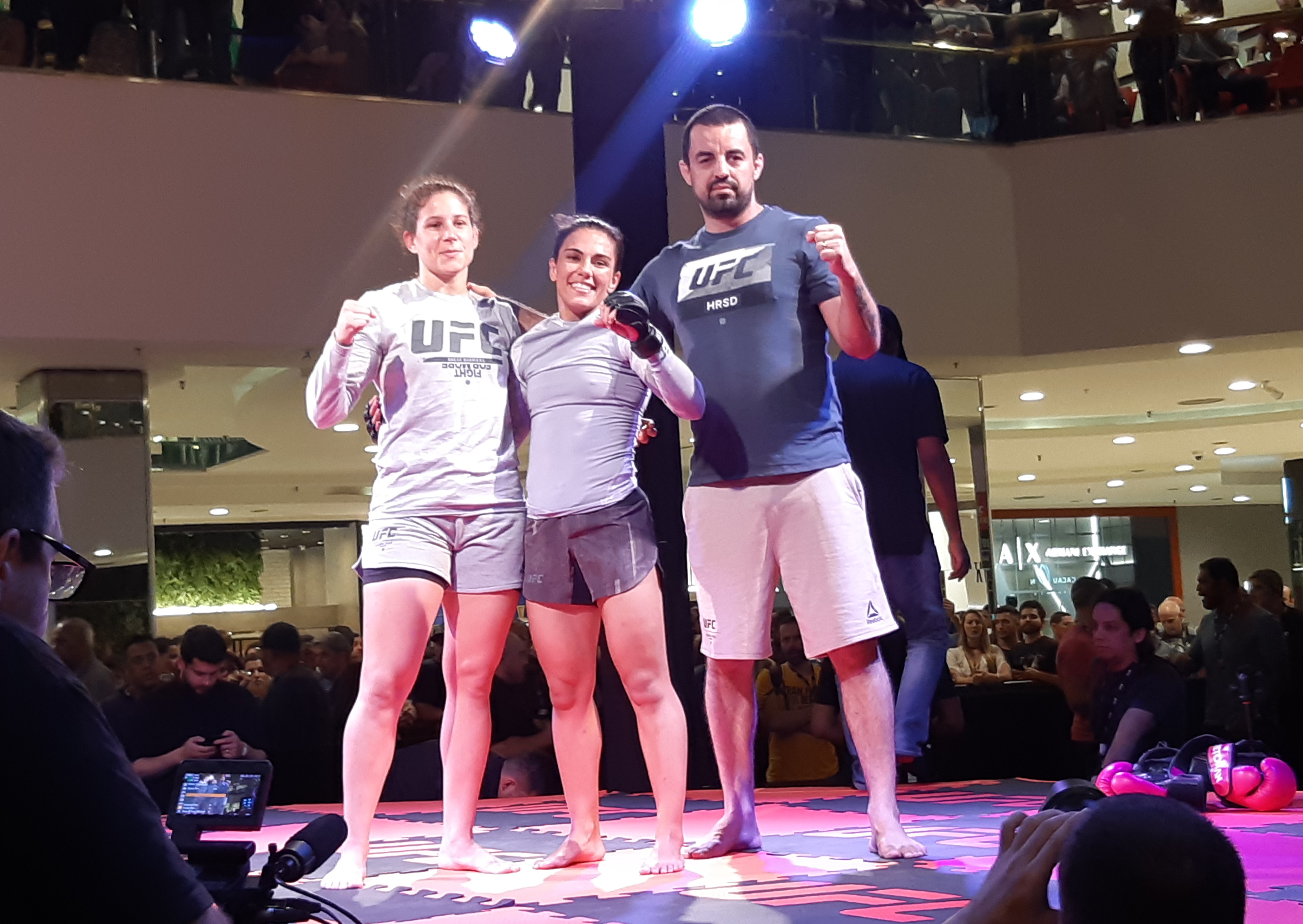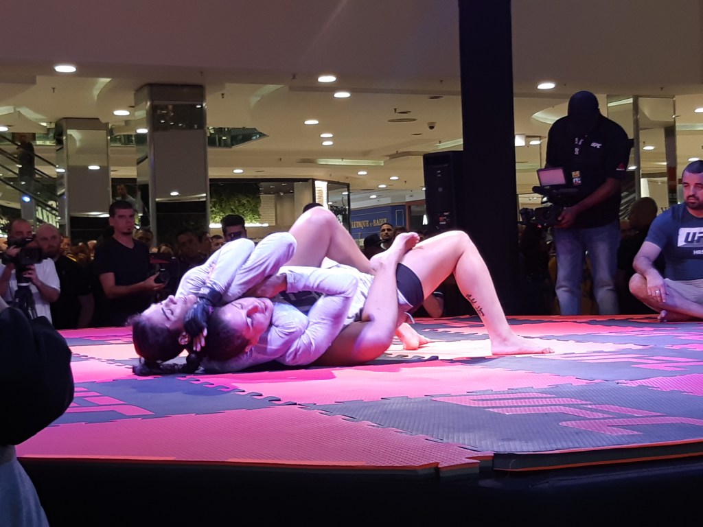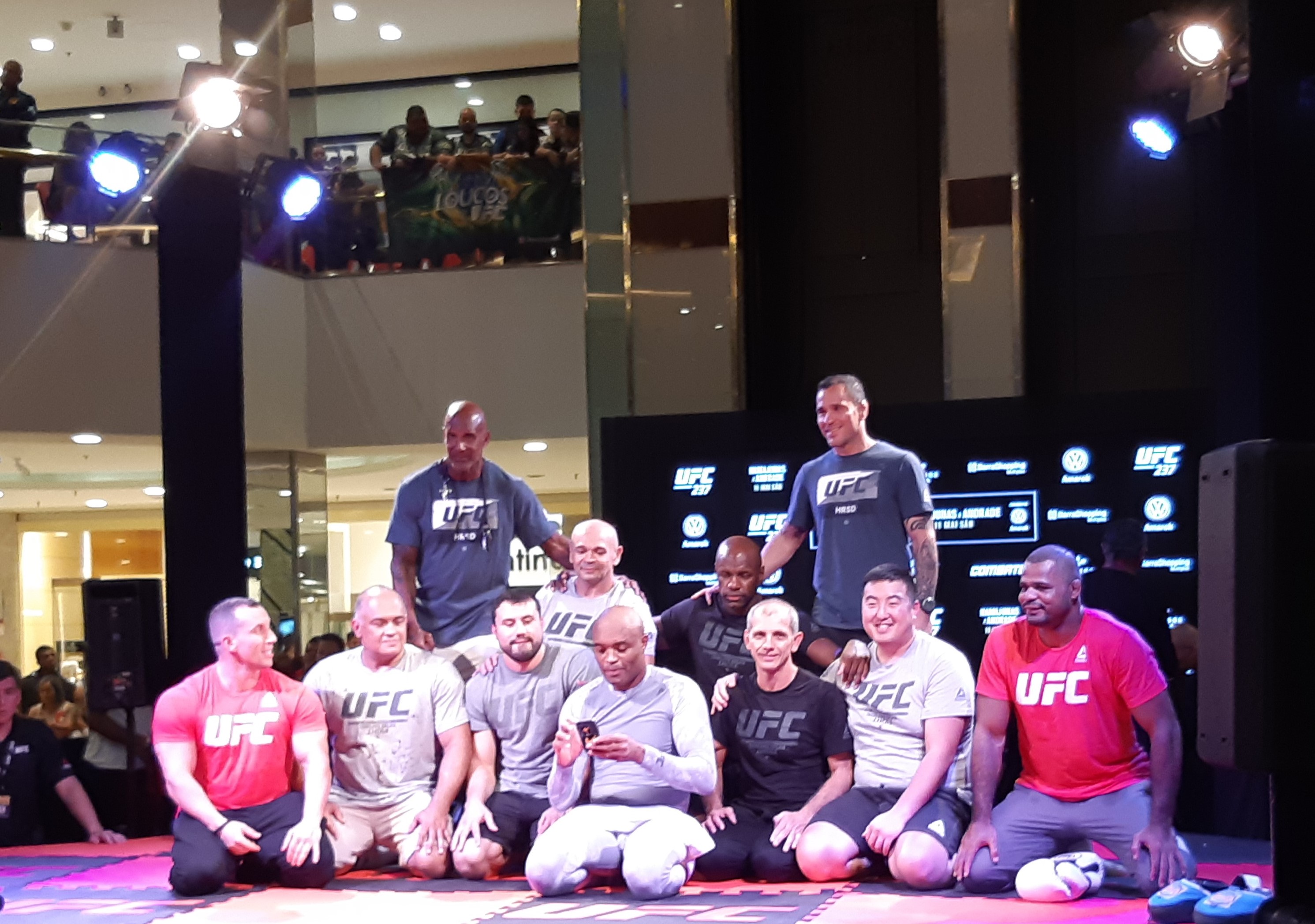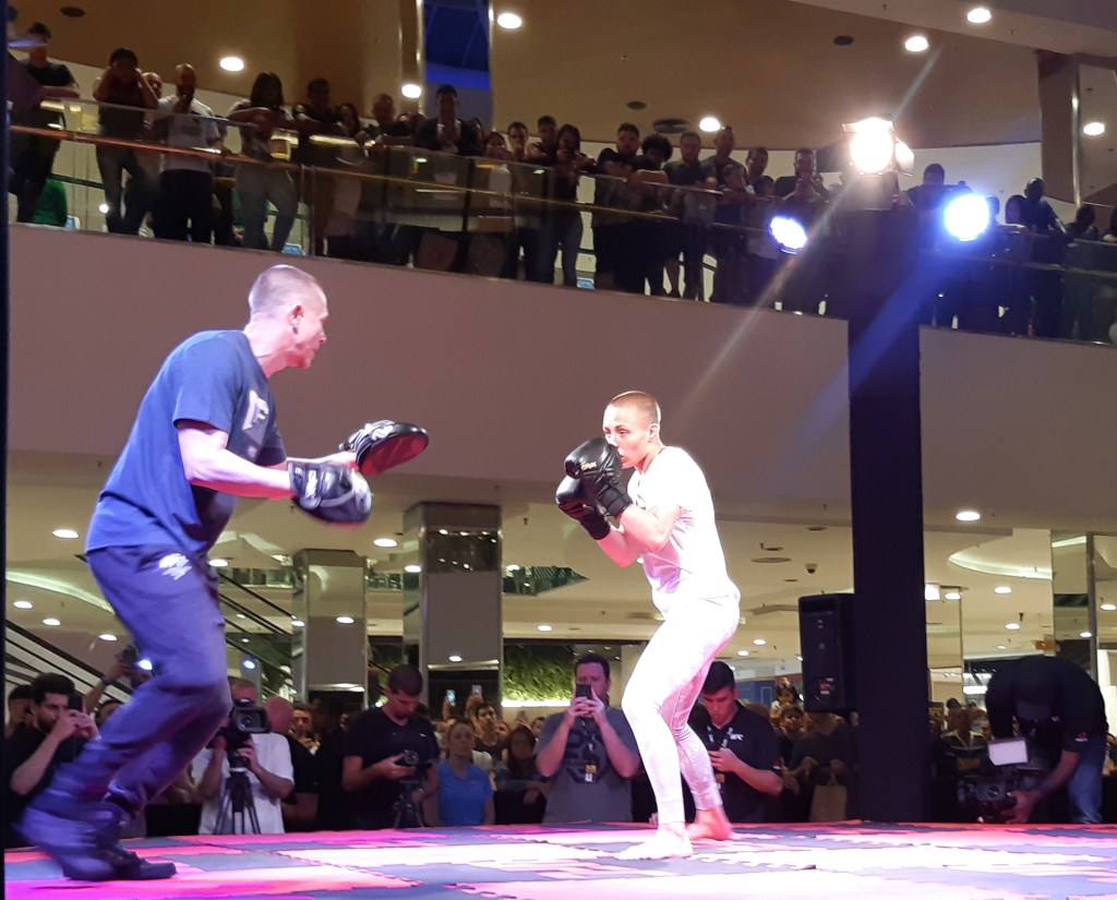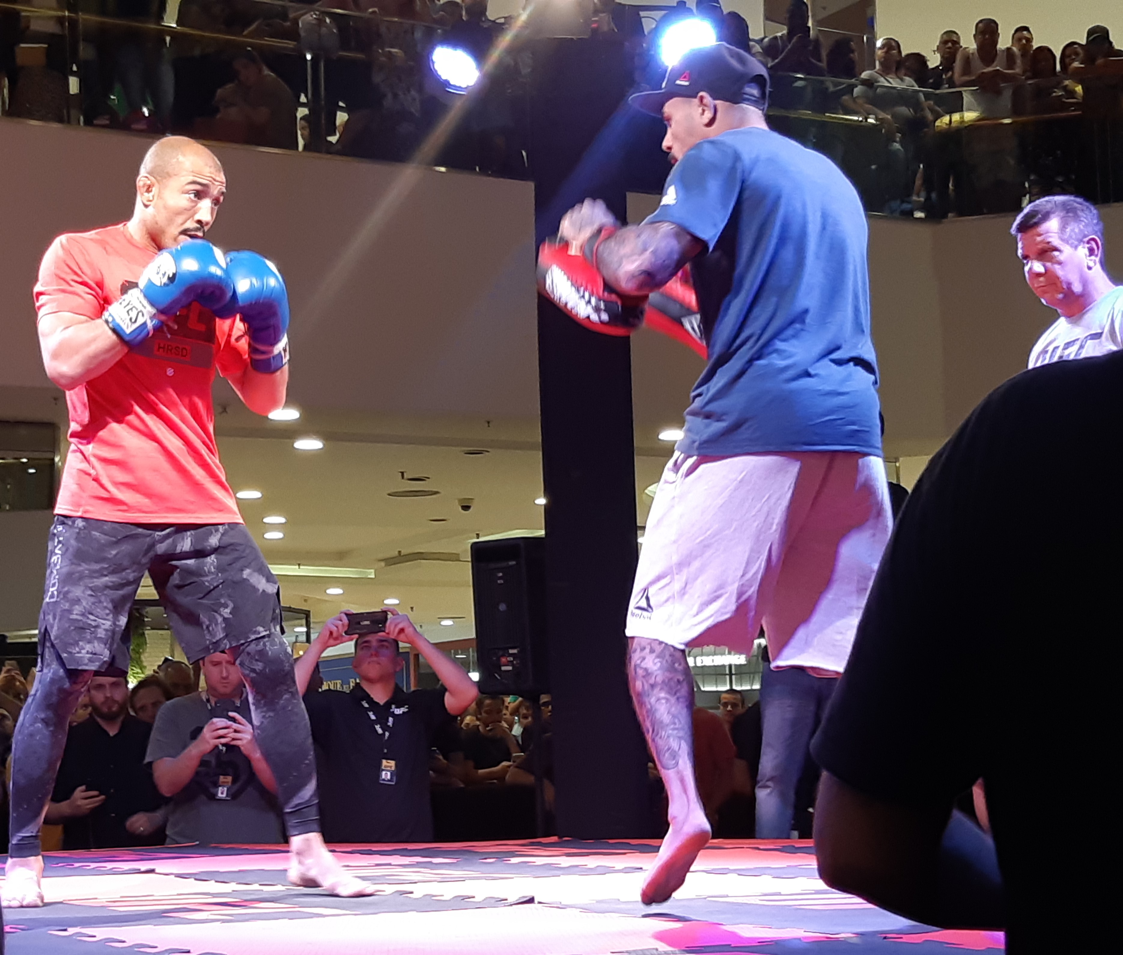 O Treino Aberto é um evento gratuito que acontece todas as quartas-feiras que antecedem às lutas de card principal sediadas no Brasil. Nessa quarta (08/05) foi o terceiro ano consecutivo que o treino ocorreu no Barra Shopping, no Rio de Janeiro, atraindo diversos fãs que não podem pagar para ir à Arena e que tentam tirar fotos com os lutadores do evento principal de sábado (11/05): a peso-palha Jéssica Andrade, o peso-pena José Aldo, a americana detentora do cinturão peso-palha Rose Namajunas e o peso-médio Anderson Silva.