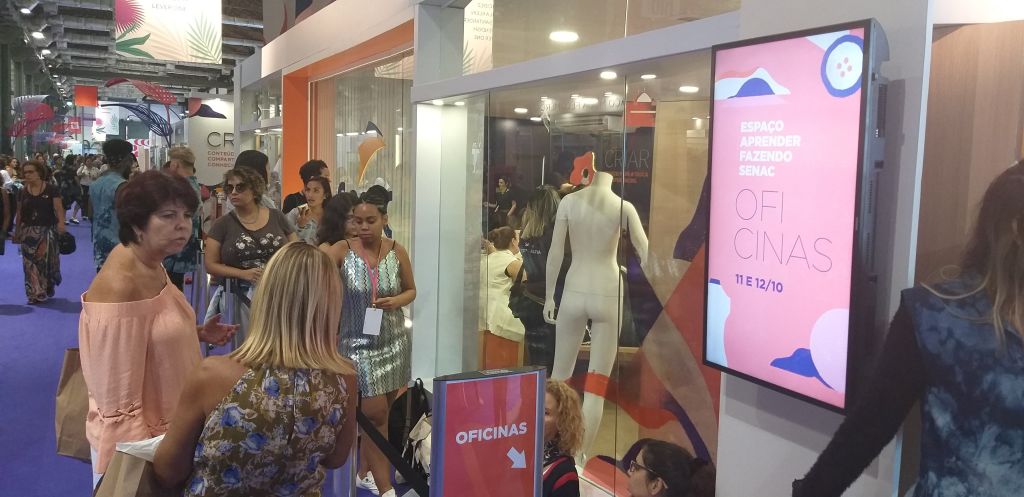 Além dos conteúdos, a gerente de moda do SENAC RJ e responsável pelo local, Leana Braga ressalta que o estande recebeu o nome de “Aprender Fazendo” porque a proposta é ensinar ao público enquanto produzem o próprio material. “A ideia é colocar a mão na massa. Aqui a gente consegue atingir não só aquelas pessoas que já trabalham com moda, mas principalmente os simpatizantes”, destaca.