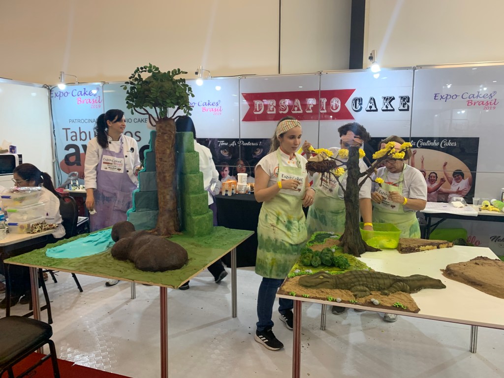 Renata Coutinho, do Time Renata Coutinho Cakes, que trabalha com o tema “Pantanal”, conta que a equipe é formada por sua família e estão muito felizes de estarem trabalhando no desafio. “É muito bacana dar oportunidade de as pessoas conhecerem nosso trabalho, porque estamos simplesmente aqui fazendo em público o que fazemos dentro do nosso ateliê há mais de 20 anos e as pessoas estão admiradas”, destaca.