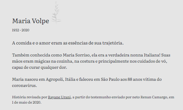 Aos interessados em se voluntariar a escrever textos de homenagem ou perderam alguém próximo e que deseja contar suas memórias para o Inumeráveis, basta acessar o link do site e cadastrar-se.