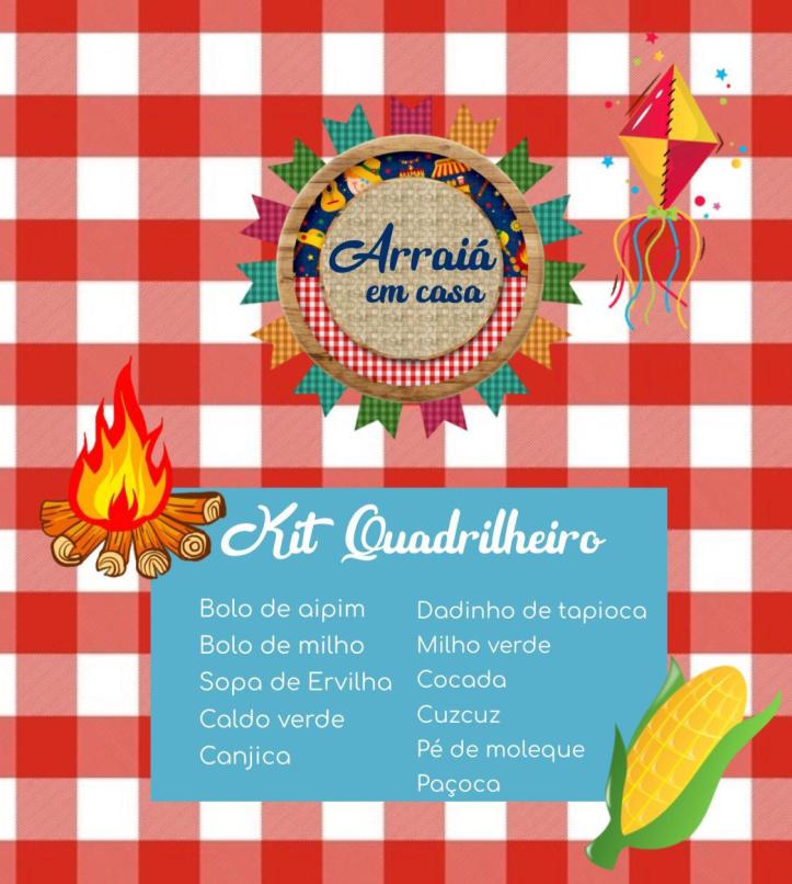 E foi pensando nesse público, que não deixou a data passar em branco, que a confeiteira Daniela Oliveira organizou kits com comidas típicas para vender nas redes sociais. Bolo de milho, canjica, cuscuz, paçoca, o cardápio é bem diversificado e é composto por iguarias que marcam os meses de junho e julho. Daniela conta que a ideia surgiu a partir do carinho que tem por São João e suas comidas típicas. “Quis levar as delícias da comida da festa em uma caixinha toda colorida e feliz como essa época é”, relata.