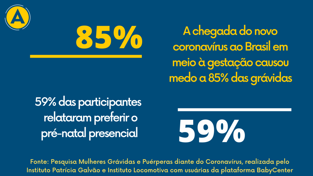 O pré-natal — assistência médica durante os 9 meses da gestação — passou por alterações em razão da pandemia, sendo uma delas, a possibilidade de consulta virtual. De acordo com a pesquisa realizada pelos institutos Patrícia Galvão e Locomotiva, uma em cada três mulheres diminuiu a frequência do pré-natal devido à crise sanitária. A necessidade de ir ao médico esbarra na apreensão das grávidas com o novo coronavírus.