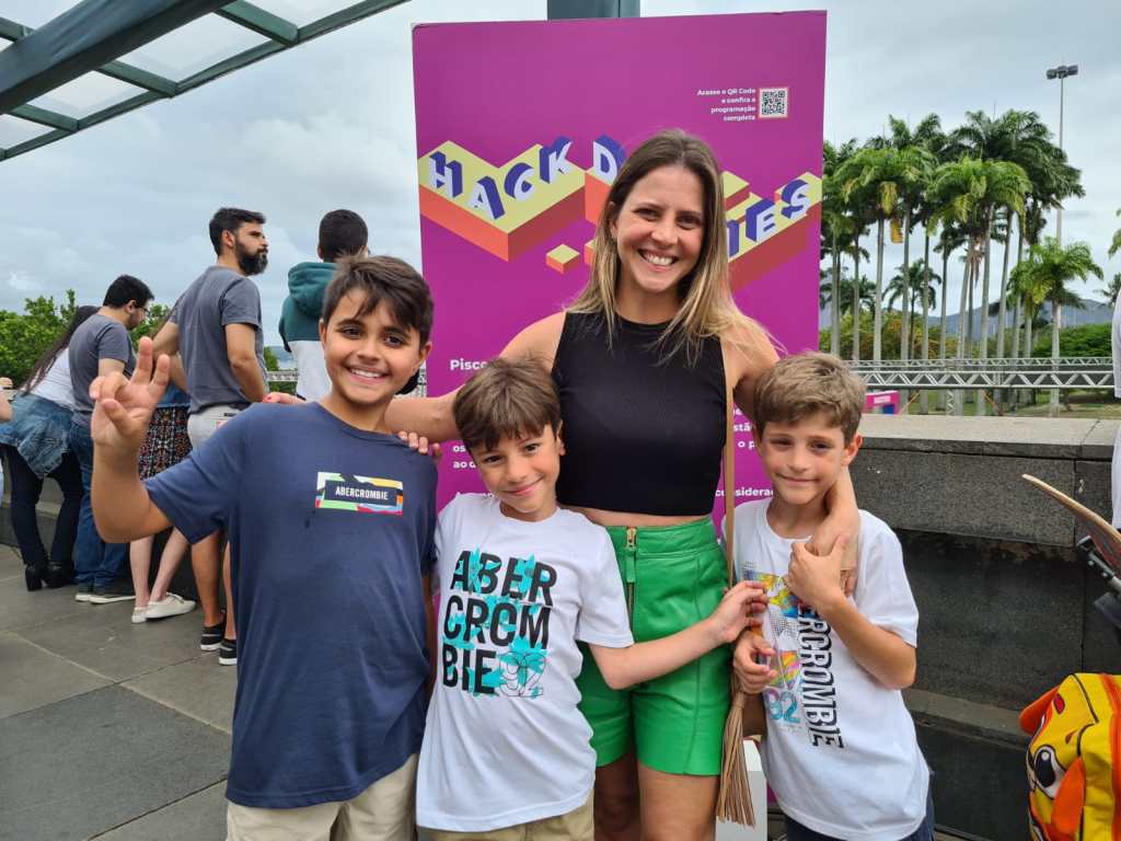 Foi justamente na escola que o enteado de Fernanda Lemos soube a respeito do Hacktudo e, junto com os filhos dela, convenceu Fernanda a levá-los no último domingo. Os meninos competiram com outras crianças numa partida de Hockey de robôs e estavam bem contentes de poder mexer e interagir com os eletrônicos. Fernanda apontou a importância desse momento para o desenvolvimento das crianças. “Eu acho que além de tudo, despertar a criação deles, desenvolve habilidades, a coordenação motora e abre a visão deles não só para aquela questão, o eletrônico, mas para as tecnologias aplicadas”, falou.