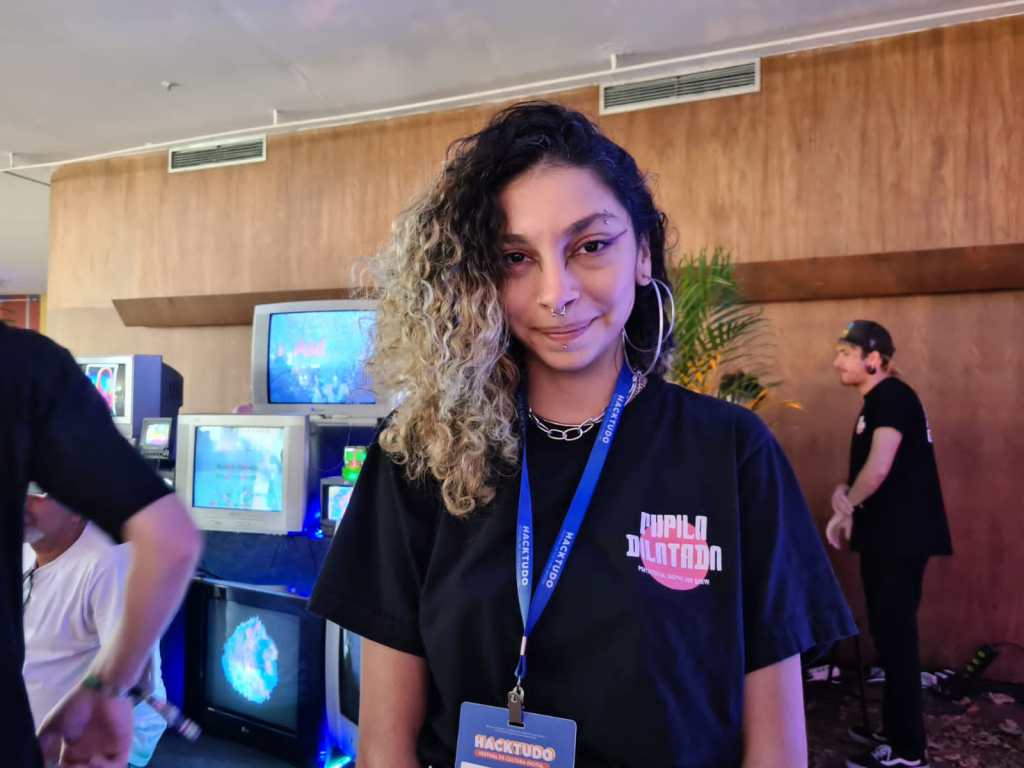 O Hacktudo reúne diferentes profissionais. No último dia, quem estava por lá foi a artista digital e professora de ciências, Flavya Peres, que fez parte da exposição do grupo Pupila Dilatada. Para a artista quando se fala de tecnologia, as pessoas imaginam algo muito distante da realidade delas. “Há a possibilidade de você mostrar o que existe de trabalho com a tecnologia e também de você criar novas relações com artefatos que a gente está utilizando agora e vai usar ainda mais no futuro”, comentou.