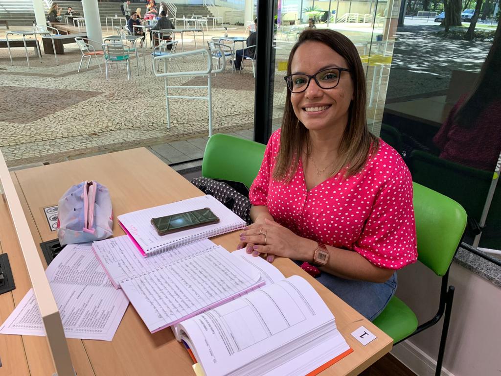 Com uma mesa repleta de livros abertos e olhar atento para o conteúdo, Daniele Batista, 41, tira o tempo de intervalo para estudar na biblioteca da universidade. Professora de português há mais de 17 anos, aos 38 resolveu cursar uma segunda graduação e atualmente está no 8º período de Psicologia na Universidade Veiga de Almeida (UVA). Para ela, conciliar trabalho, maternidade e ainda ser uma boa aluna na faculdade não é simples.