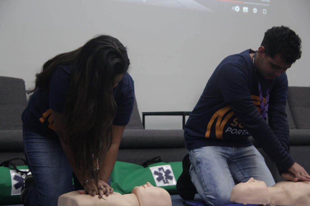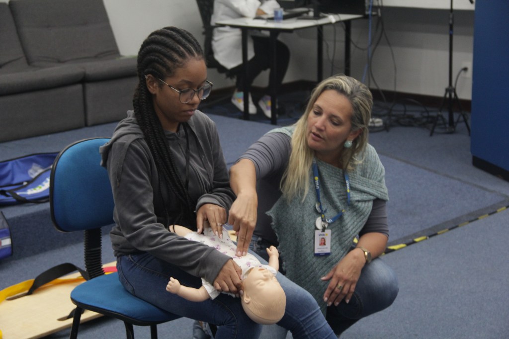 A coordenadora do curso de Enfermagem, Lidiane Reis utilizou da teoria e da prática para apresentar algumas noções de primeiros socorros para os estudantes. “O objetivo é causar o primeiro engajamento dos jovens com a área da saúde, e ensinar os primeiros passos para que se tornem futuros enfermeiros”, afirmou a docente. Entre os conteúdos apresentados estavam: para quem ligar em caso de emergência, como preparar o ambiente e a forma correta de fazer as manobras de desengasgo e massagem cardíaca.
