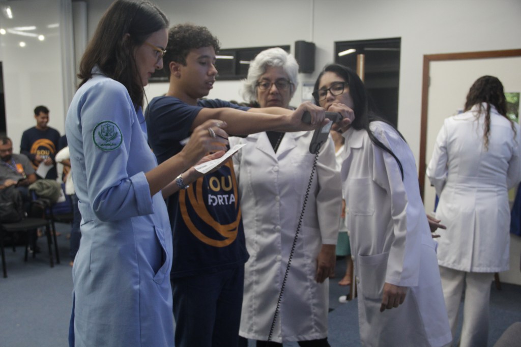 Já no curso de Nutrição, a coordenadora Glaucia Justo fez uma dinâmica de avaliação da composição corporal dos estudantes, e segundo ela, o objetivo era fazer os jovens entenderem que o resultado deste exame é reflexo da alimentação do indivíduo: “São jovens entre 16 e 21 anos que muitas vezes não possuem uma alimentação saudável. Com a avaliação eles puderam ver quanto tem de massa muscular, quanto de gordura, e entender o funcionamento dos equipamentos também”, afirmou a docente.