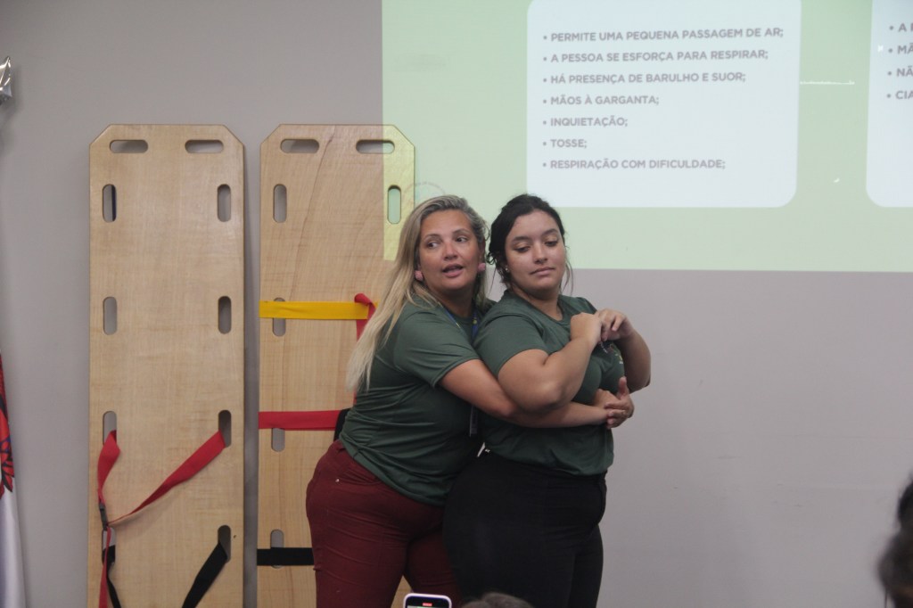Entre os conhecimentos abordados estiveram também: manobras de desengasgo em bebês, crianças e adultos, identificação de sintomas de traumatismo cranioencefálico e procedimentos para lidar com intoxicação. Assista abaixo uma demonstração da manobra de desengasgo em adultos/manobra de Heimlich: