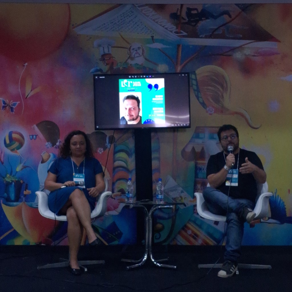 A palestra intitulada ‘Era Uma Vez com Chat GPT: Introdução ao Storytelling Criativo’, foi ministrada pela professora de audiovisual e mídias digitais da Universidade Veiga de Almeida, Mônica Miranda. Ela apresentou técnicas de storytelling, enfatizando a importância de conectar pessoas por meio de histórias, destacando o papel do Chat GPT apenas como uma ferramenta para organizar ideias e iniciar o processo criativo. Tendo em vista, que ele é utilizado muitas vezes como uma espécie de copia e cola no processo da criação. Na prática que realizou com os participantes da palestra, ela apresenta como aliar criatividade e tecnologia, permitindo com que todos vivenciassem a criação escrita junto com a inteligência artificial