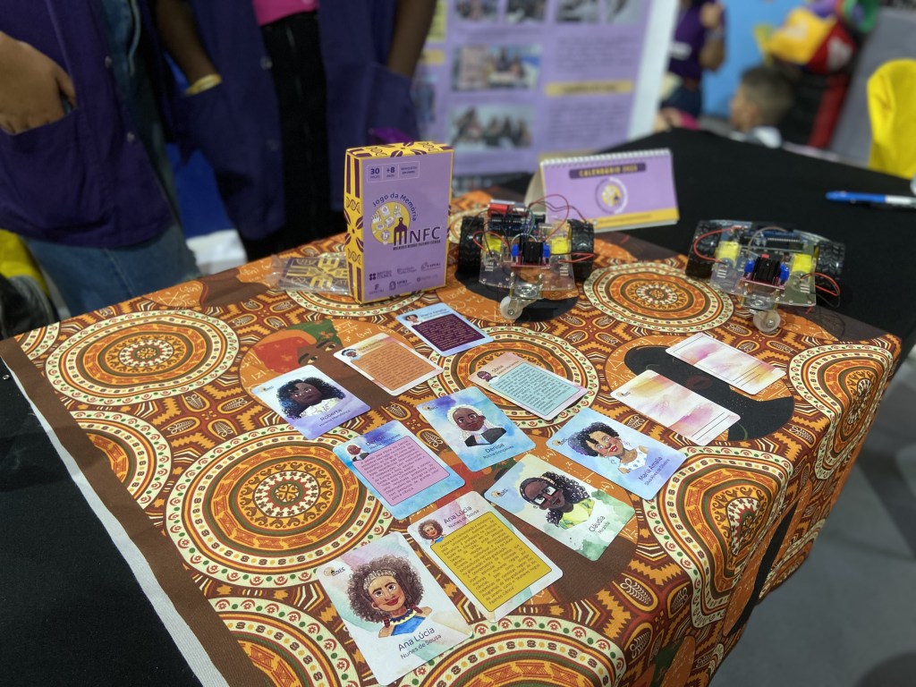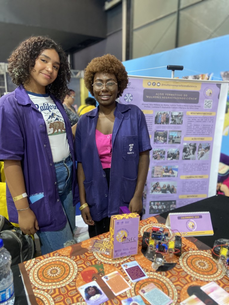 Maria Luiza Morais, estudante do segundo ano de automação industrial no CEFET Maria da Graça, apresentou o projeto “Mulheres Negras Fazendo Ciência”, criado para incentivar meninas e mulheres a ingressarem nas áreas de ciências, como engenharia e ciências da computação. “O projeto surgiu com o intuito de motivar meninas e mulheres para que elas possam entrar no mercado de trabalho na área das ciências”, explicou Maria Luiza. A iniciativa surgiu em resposta a uma pesquisa de 2019 que analisou a representação de gênero e raça nas turmas dessas disciplinas, revelando a baixa presença de mulheres negras. “Nós oferecemos oficinas de robótica, cine debate, cursos de marketing digital, e também o jogo da memória, onde relacionamos cientistas às suas histórias” O projeto também promove a divulgação de cientistas negras por meio de calendários customizados e uma equipe dedicada às mídias sociais, visando aumentar a visibilidade e presença dessas mulheres no mercado de trabalho. “Nosso Instagram é @mulheresnegrasfazendociencia, onde compartilhamos nossas atividades e histórias”, acrescentou Maria Luiza.