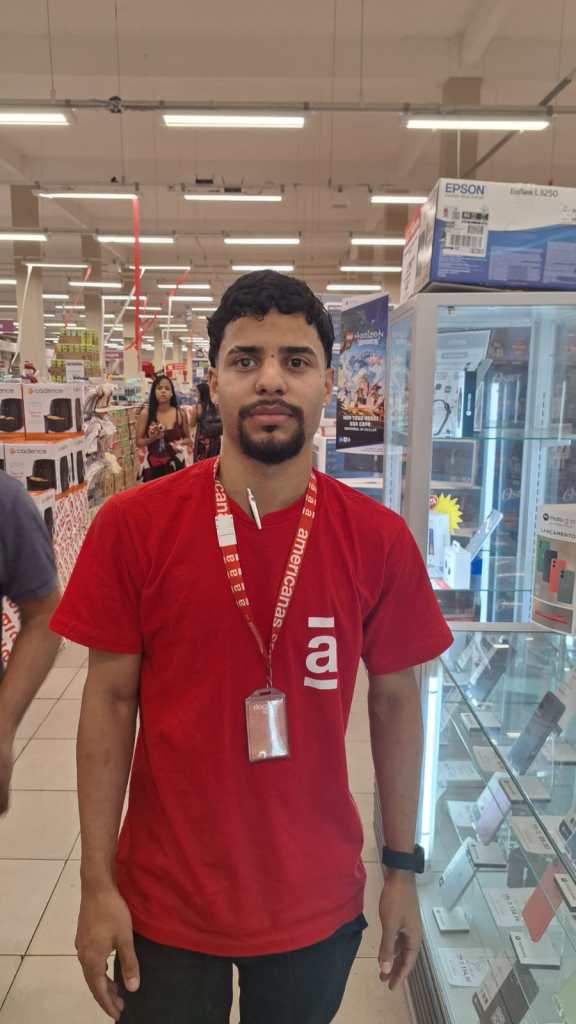 João Vitor, vendedor da loja Americanas no calçadão de Duque de Caxias, explicou que, ao identificar um preço mais atraente em uma loja concorrente, ele entra em contato com o departamento de gestão de lojas ou com a gerente para negociar uma redução no valor do produto, visando aumentar as vendas. O objetivo, segundo ele, é que, caso um cliente chegue à loja com uma oferta de concorrência, seja possível ajustar o preço para igualá-lo ou torná-lo mais acessível. A estratégia, no entanto, não é aplicada diretamente durante a visita do cliente; a informação sobre o preço do concorrente é analisada posteriormente. “Por exemplo, estou com um produto aqui, fui à concorrência e vi que o preço está mais baixo. Aí, é vantajoso tentar entrar em contato com a minha DGL ou com a minha gerente, para que ela consiga falar com alguém que possa baixar o preço e a gente consiga vender mais. Ou seja, se o cliente chegar aqui com uma oferta de um concorrente, muitas vezes conseguimos cobrir esse preço. Isso não acontece na hora que o cliente chega, mas pegamos a informação e depois analisamos os preços em outras lojas, ajustando o nosso para ficar mais acessível ou igual ao da concorrência”.