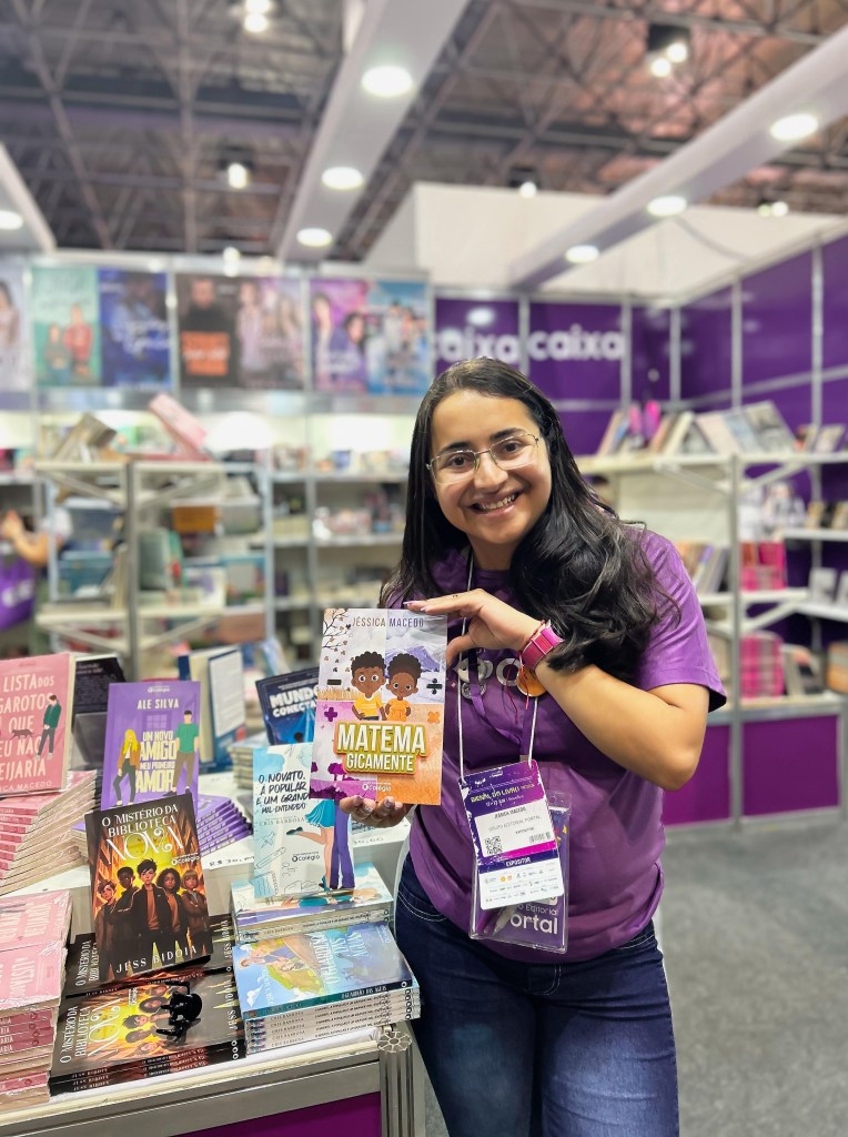 A escritora mineira Jéssica Macedo, de 29 anos, explica como traz visibilidade a grupos minoritários em seus livros. “A representatividade aparece nos meus livros por meio do meu cotidiano. Eu busco trazer pessoas do meu dia a dia. Os leitores encontram muitos nomes; eu busco também trazer características físicas. Se a leitora tem tendência mais asiática, se ela é negra… eu trago isso para as características dos meus personagens. Por exemplo, ‘Matemagicamente’ é uma história de dois irmãos, crianças negras, e eles foram inspirados nos netos da pessoa que trabalha comigo. Além disso, o meu livro ‘O Inimigo Virtual’ é sobre uma turma de amigos, pois, como cresci com pessoas negras e brancas e não fazíamos distinção, eu queria que o grupo fosse como era na minha infância”, diz Jéssica.
