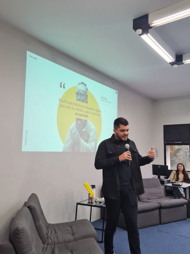 Por fim, Jhonatan Luiz apresentou exercícios de respiração que auxiliam na desenvoltura durante a fala, além de truques para aumentar a confiança, como escolher roupas que transmitam segurança e manter uma postura firme ao se apresentar. Ele também destacou a importância de identificar, no momento da exposição, o que chamou de “rosto amigo”: alguém na plateia que esteja atento e receptivo, servindo como ponto de referência e apoio emocional para o orador.