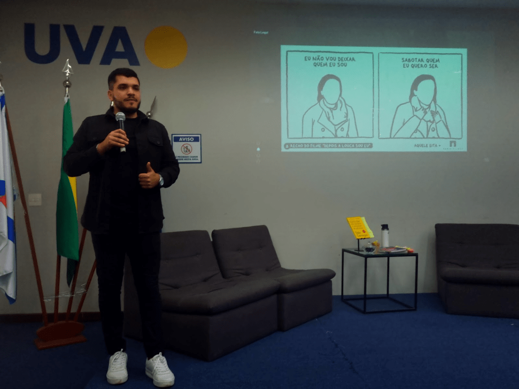 Digam para si mesmos: eu posso, eu quero, eu consigo.A frase dita por Jhonatan Luiz, fundador do projeto ‘Fala Legal’, marcou um dos principais pontos abordados na oficina“Como Falar em Público sem Medo”, realizada durante a Semana de Comunicação (SECOM) no campus UVA-Barra. A atividade teve como objetivo ensinar aos universitários técnicas de respiração, além de estratégias para aumentar a autoconfiança ao se expressar em público, tudo baseado em estudos e dados estatísticos.