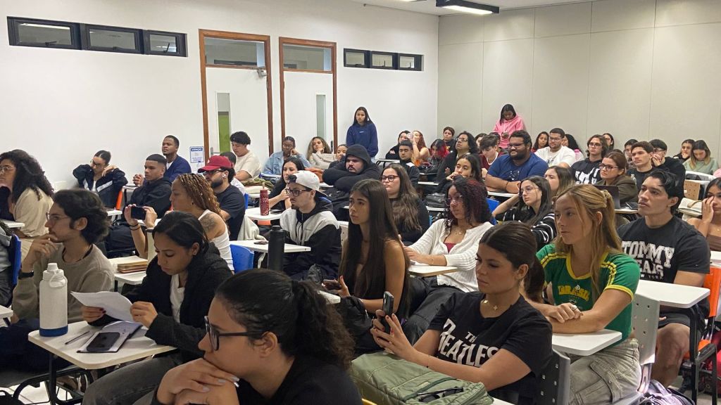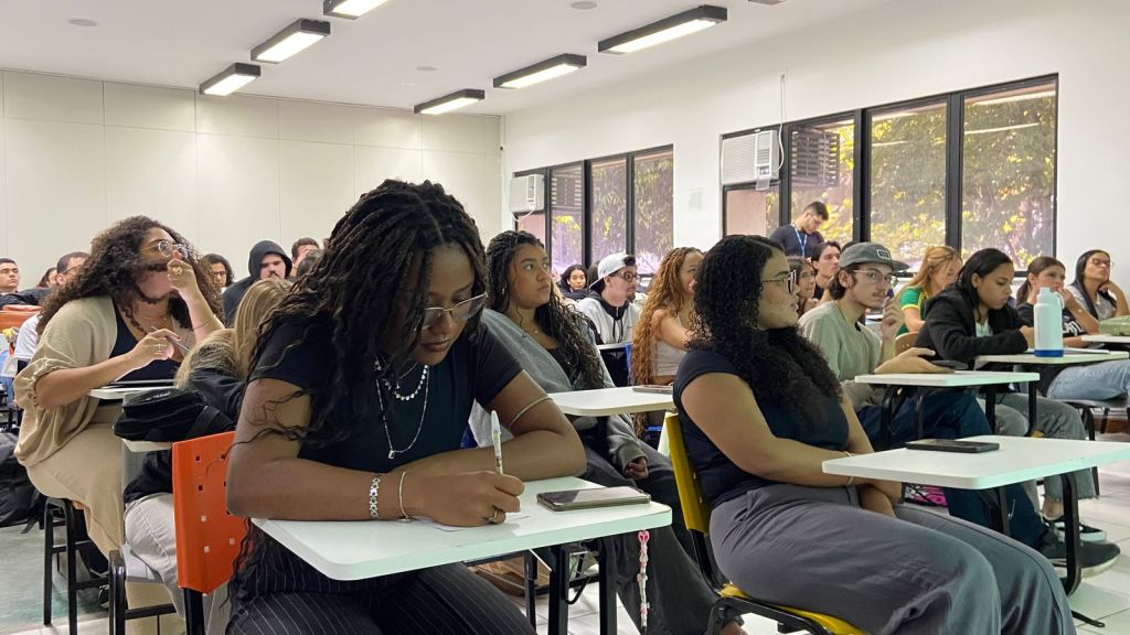 A escolha das narrativas a seguir também foi destaque. Clara aconselhou aos alunos a pensarem em que tipo de histórias as pessoas querem ouvir como público consumidor, reforçando que o audiovisual precisa refletir os contextos históricos e sociais. As produções audiovisuais vão além de algo com fim meramente de entretenimento, são também agentes de transformação e formação de opiniões. Nesse processo, buscar referências se faz indispensável.
