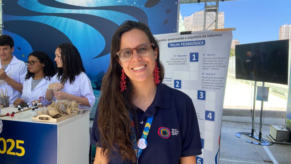 A Escola SAP foi uma das instituições de ensino a participar do evento com os alunos do Ensino Médio, que apresentaram um projeto sobre o descarte inadequado de óleo e seus impactos nos ecossistemas marinhos.“Estar aqui desperta o interesse pela pesquisa e pelo saber científico. Os alunos entram em contato com pesquisadores e se tornam jovens mais críticos e conscientes. Eles pensaram em soluções reais para o problema ambiental que estudaram, e isso é transformador”, explicou Manuela Colamarco, coordenadora pedagógica da escola.
