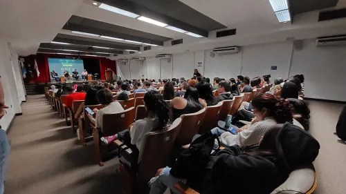 A primeira mulher a assumir a presidência da ACERJ, em 105 anos, destacou, durante palestra para estudantes, os desafios de conquistar espaço no jornalismo esportivo. Para ela, a trajetória é marcada por resistência e esforço contínuo. “Ser mulher é cansativo, você precisa se promover 10 vezes mais que os homens. Eu estou exausta de ser mulher, principalmente com esse mundo machista do jornalismo esportivo”, afirmou, ressaltando que a desigualdade ainda atravessa o meio esportivo. Ela também falou um pouco da sua decisão de aceitar o cargo de diretora da ACERJ, que veio após um alerta de um colega, sobre os antigos diretores só serem homens, esse comentário a motivou a ocupar o posto e abrir caminho para outras profissionais. “Alguém tem que abrir essa porta, na verdade arrombar essa porta, precisamos mostrar cada vez mais que temos o poder e os mesmos direitos dos homens. Somos tão boas quanto eles e ninguém pode nos impedir de fazer isso”, completou Martha.